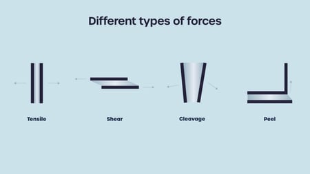 Secondly, adhesive experts will often describe peel and cleavage forces as an adhesive’s ‘nightmare’. And whilst some adhesives can withstand these forces, most can’t. Designing the joint to reduce these types of forces will increase the likelihood of success.