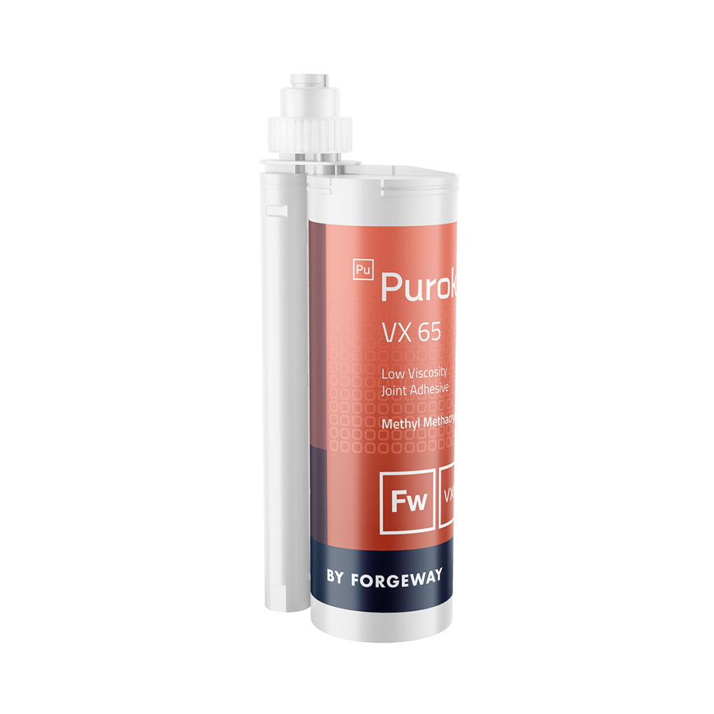 The lowered viscosity of Purok VX65 ensures smoother application, making it ideal for seamless joint sealing. The reduced viscosity also helps chip repair applications as the adhesive flows into the hole easier.